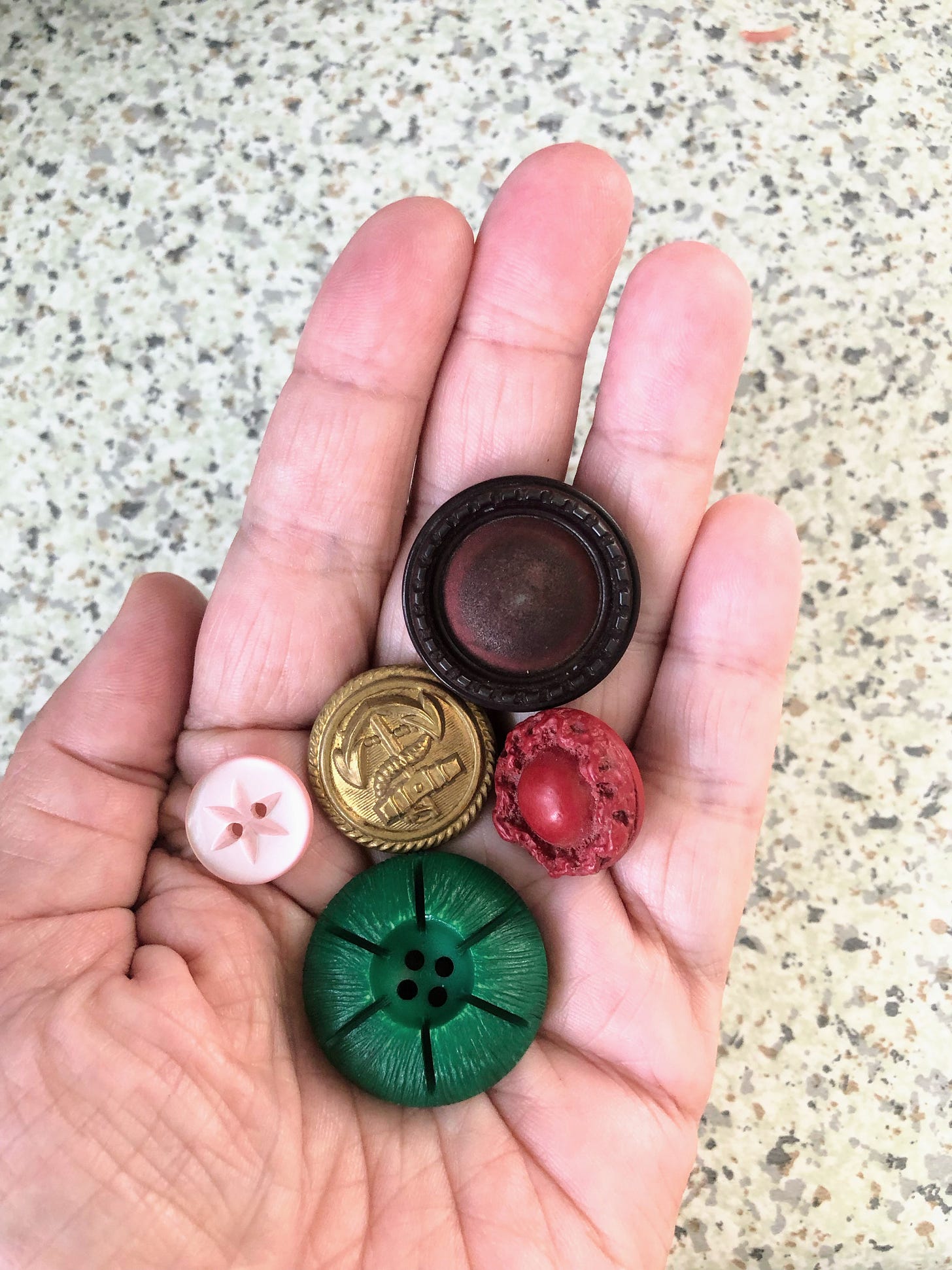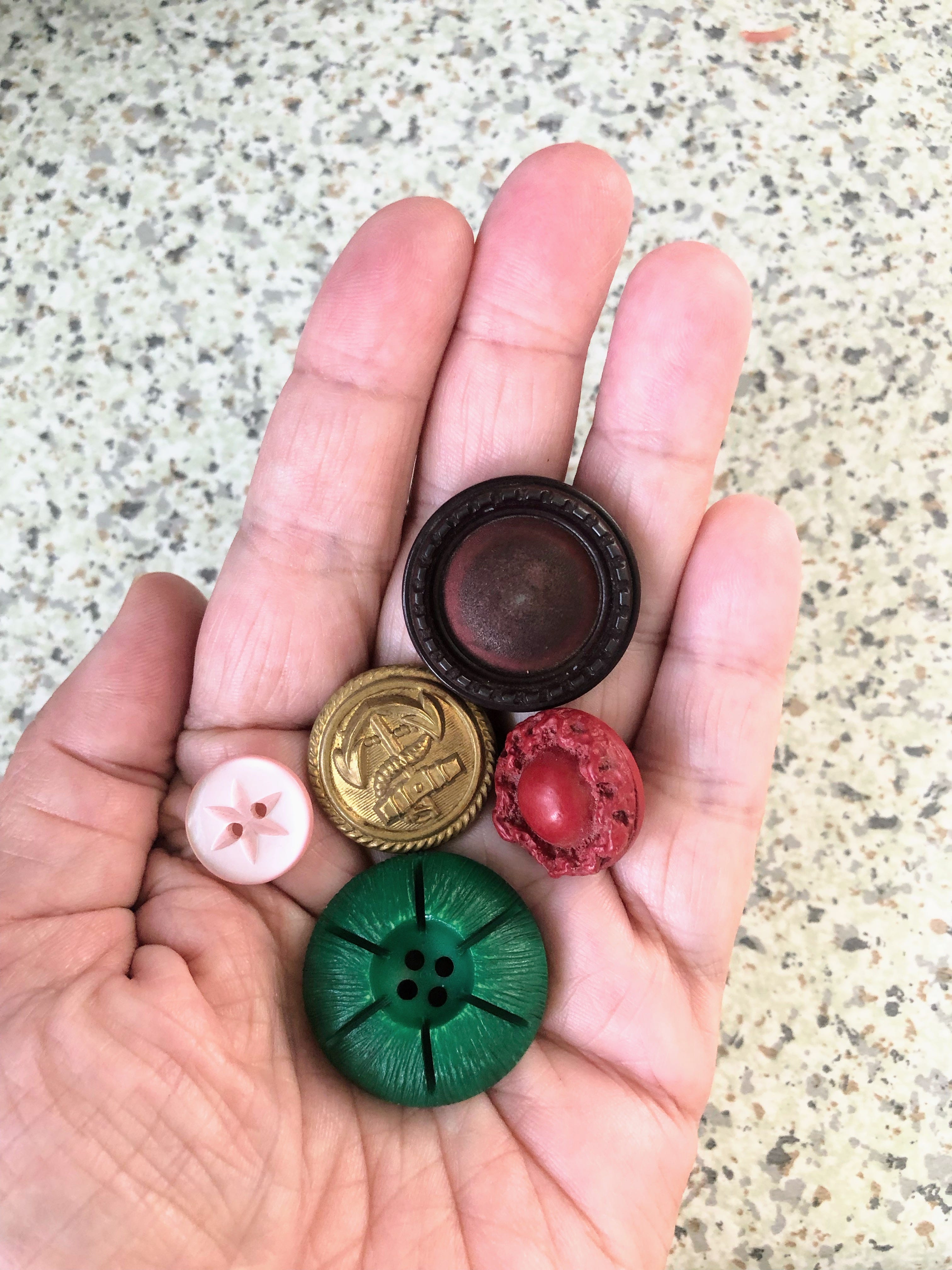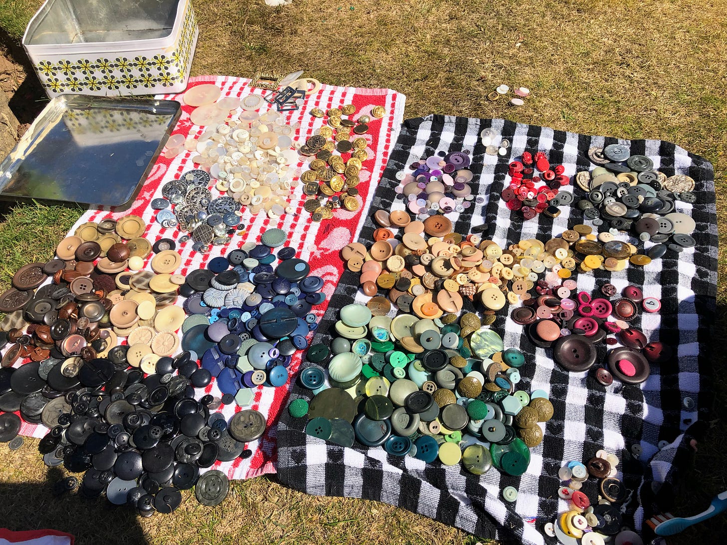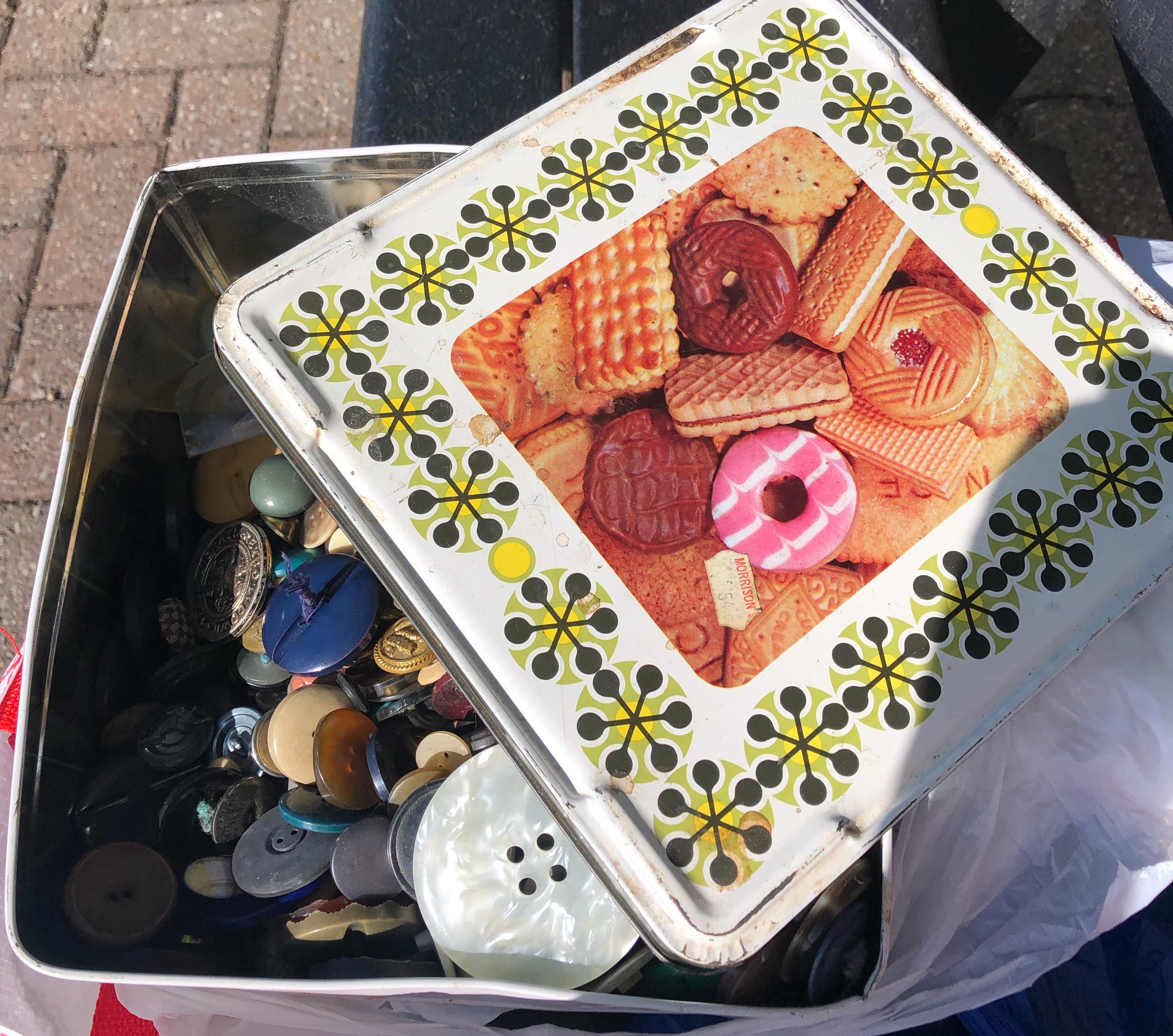 My gran had a small collection of buttons in my grandad’s old tobacco tin.